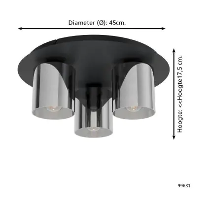 Eglo Deckenleuchte Gorosiba 1 Stahl Schwarz | IP20 - Geeignet für 3x E27