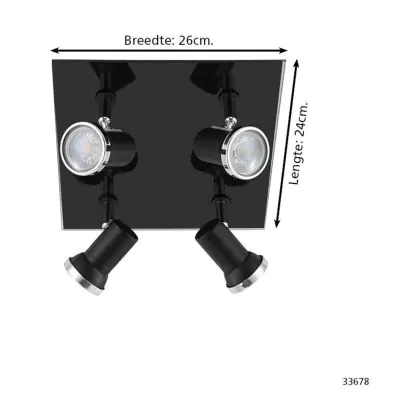 Beschreibung Eglo Deckenleuchte Tamara 1 Stahl Schwarz Chrom 4x2.8W 4x250lm - 830 Warmweiß | IP44 - Inkl. 4x GU10