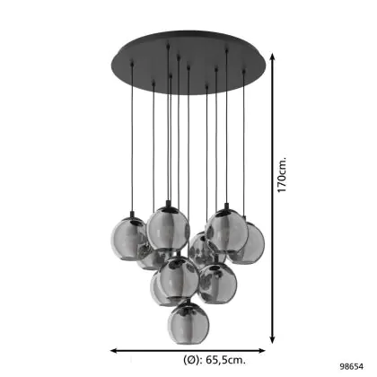 Die Eglo Pendelleuchte Ariscani Stahl Schwarz | Geeignet für 10x E27 sorgt für eine angenehme Ausleuchtung und punktet durch modernes Design. Diese Leuchte ist speziell zur Montage an der Decke vorgesehen.