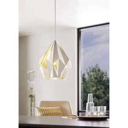 Eglo Pendelleuchte Carlton 1 Stahl Weiß Gold | IP20 - Geeignet für 1x E27