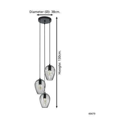 Beschreibung Eglo Pendelleuchte Newtown Stahl Schwarz | IP20 - Geeignet für 3x E27