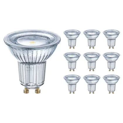 Die Mehrfachpackung 10x Ledvance Performance LED-Spot Reflektor GU10 PAR16 4.3W 350lm 120D - 827 Extra Warmweiß | Ersatz für 30W ist eine effiziente GU10 LED-Lampe und der perfekte Ersatz für Ihre konventionelle Halogenlampe mit 30W und einem GU10-Sockel, bei welchem die zwei Stifte einen Abstand von 10 mm zueinander haben. Zudem strahlt das Produkt Licht in der Farbtemperatur 2700K - Extra Warmweiß aus und punktet durch eine lange Lebensdauer.