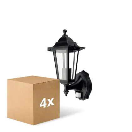 Mehrfachpackung 4x D'Lite Wandleuchte Helora Schwarz | IP44 - Geeignet für 1x E27 - Bewegungssensor