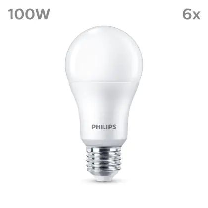Die Mehrfachpackung 6x Philips Glühbirne LED E27 Birne Matt 13W 1521lm - 840 Kaltweiß ist eine effiziente E27 LED-Lampe und der perfekte Ersatz für Ihre konventionellen W Lampen mit E27-Sockel. Zudem strahlt sie Licht in der Farbtemperatur 4000K - Kaltweiß aus und punktet durch eine lange Lebensdauer.