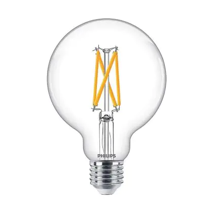 Die Mehrfachpackung 6x Philips MASTER Value LED Globe E27 93mm Fadenlampe Klar 5.9W 806lm - 922-927 Extra Warmweiß | Höchste Farbwiedergabe - Dimmbar - Ersatz Für 60W ist eine effiziente E27 LED-Lampe mit Retrodesign und der perfekte Ersatz für Ihre konventionellen 60W Lampen mit E27. Zudem strahlt sie Licht in der Farbtemperatur aus und punktet durch eine lange Lebensdauer.