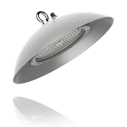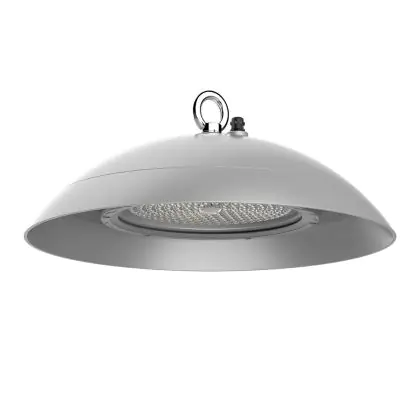 Das LED-Highbay ist besonders robust. Dank der Einordnung in die Schutzklassen IP66 und IK10 ist die Leuchte vollkommen staubdicht, geschützt gegen starkes Strahlwasser und kann Stößen mit einer Kraft von bis zu 20,0 Joule standhalten, ohne einen Schaden zu erleiden. Das entspricht einem Schlag mit einem 5 kg schweren Schlagwerkzeug aus 40 cm Entfernung. Aufgrund der hohen Klassifizierungen kann die Leuchte auch in Außenbereichen angebracht werden. Des Weiteren ist die Leuchte ammoniak- und korrosionsbeständig und kann daher auch in Ställen als Lichtlösung dienen. Außerdem ist das Design derart konzipiert, dass sich kein Staub ablagern kann. Das spart Ihnen viel Zeit und Mühe.