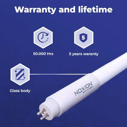 Wir von BeleuchtungDirekt haben mit der T5 LED-Röhre von Noxion gute Erfahrungen gemacht. Daher bieten wir Ihnen für dieses Produkt eine Garantie von 5 Jahre an.