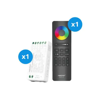 Das hier angebotene Set enthält die Miboxer 4 Zone RGB+CCT Fernsteuerung sowie den Miboxer 3-in-1 Regler (RGB + RGBW + RGBCCT).