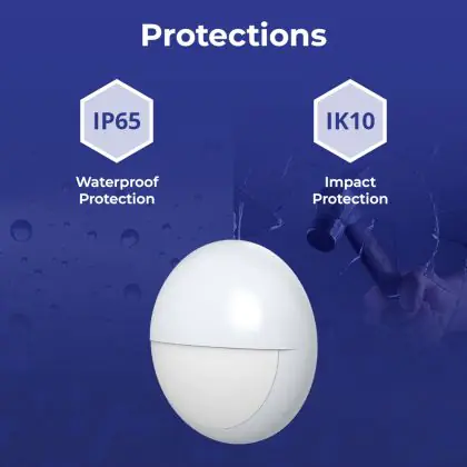 ![]() Die IK-Schutzklasse zeigt die Schlagfestigkeit einer Leuchte sowie den Schutz vor Vandalismus an. Sie wird in zwei Ziffern ausgedrückt (IK00 - IK10). Produkte mit IK00 sind somit nicht geschützt gegen Schläge oder Stöße jeglicher Art. Produkte mit IK10 bieten Schutz gegen Stöße von 20 Joule und sind gegen vandalismus-sicher. |