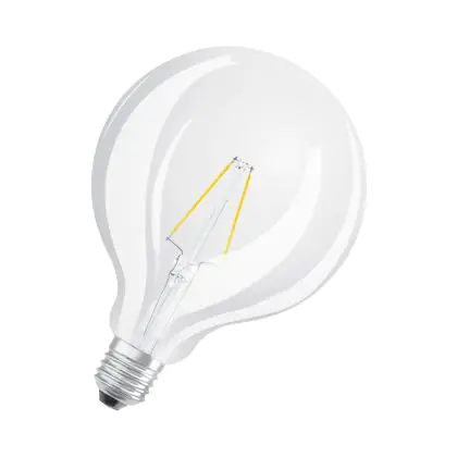 Die Osram Classic LED E27 Globe Fadenlampe Klar 2.5W 250lm - 827 Extra Warmweiß | Ersatz Für 25W - UKCA Version ist eine effiziente E27 LED-Lampe mit Retrodesign und der perfekte Ersatz für Ihre konventionellen 25W Lampen mit E27. Zudem strahlt sie Licht in der Farbtemperatur 2700K - Extra Warmweiß aus und punktet durch eine lange Lebensdauer.