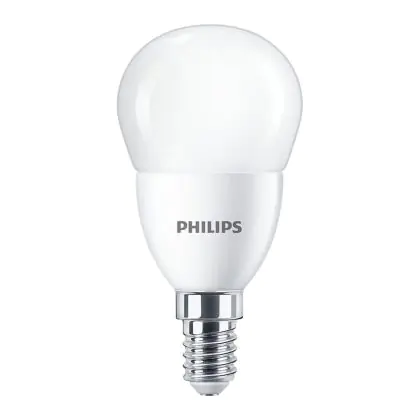 Die Philips Corepro LED Lustre E14 Kugel Matt 7W 806lm - 865 Tageslichtweiß | Ersatz für 60W ist eine effiziente E14 LED-Lampe und der perfekte Ersatz für Ihre konventionellen 60W Lampen mit E14-Sockel. Zudem strahlt sie Licht in der Farbtemperatur 6500K - Tageslichtweiß aus und punktet durch eine lange Lebensdauer.