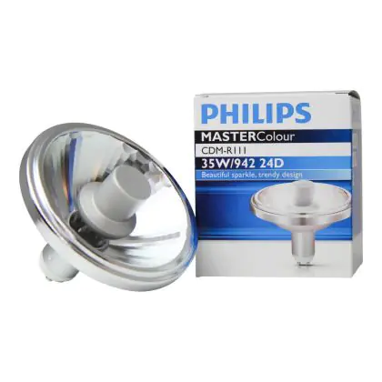 CDM-R111 Lampen sind Kompaktentladungslampen mit einem großen Reflektor. Sie haben eine sehr hohe Lichtausbeute.Die Philips CDM-R111 35W 942 GX8.5 24D (MASTERColour)ist eine kompakte Leuchtstofflampe mit einem GX8.5 Lampensockel. Dieser Lampensockel ermöglicht einen einfachen und schnellen Austausch. Es ist nicht möglich, diese Lampen zu dimmen.